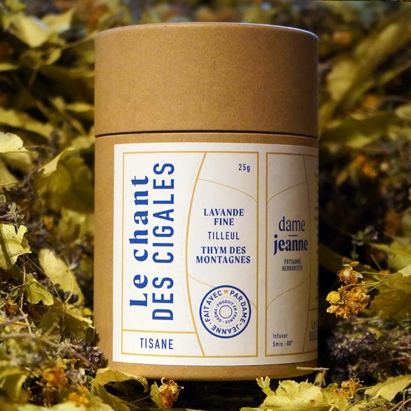 Tisane biologique produite en Drôme, un mélange de Lavande fine, Tilleul et Thym des montagnes.