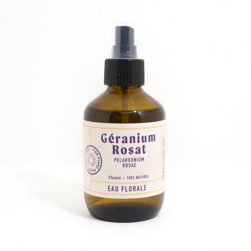 L'eau florale de géranium , connue pour la finesse de son parfum elle est traditionnellement utilisé pour les peaux sensibles, abuser de cette odeur qui relaxe elle peut aussi amener une note d'exotisme à vos desserts et boissons. Flacon verre brun 200ml.